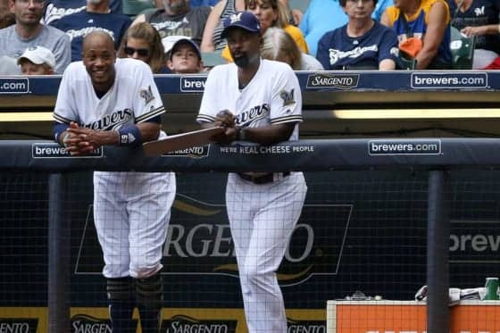 ブルワーズの打撃コーチを務めていたダネル・コールズ氏(右)【写真:Getty Images】