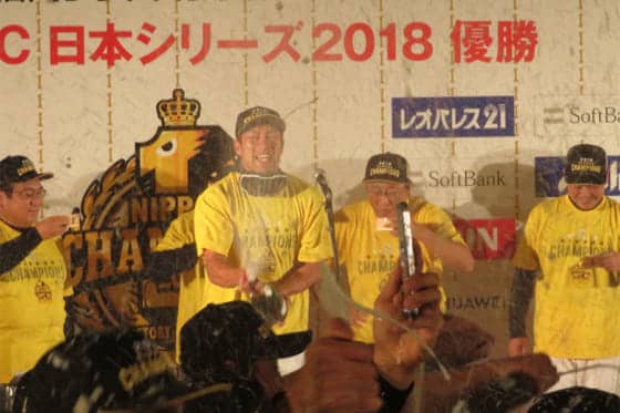 歓喜の祝勝会を行なったソフトバンク【写真:福谷佑介】