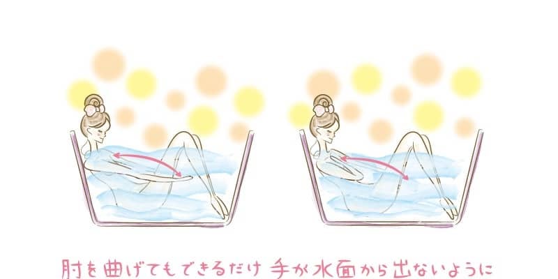 (1)お風呂にできるだけ深く沈むように浸かり、肘を伸ばします。