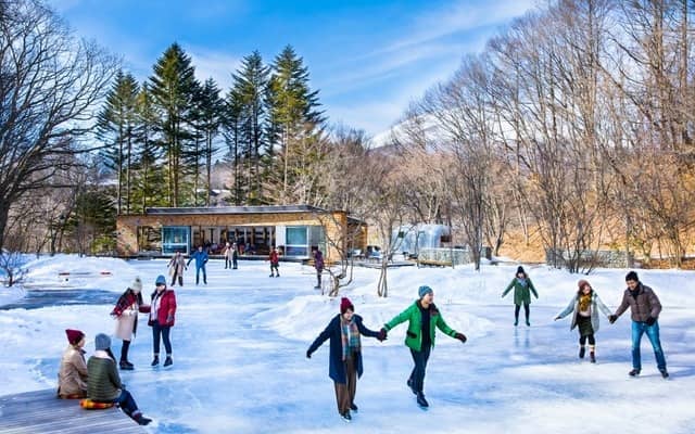 星野リゾートが運営する屋外スケート場「ケラ池スケートリンク」は、冷却装置を使わずに冬の寒さだけで凍らせる「天然氷エリア」…