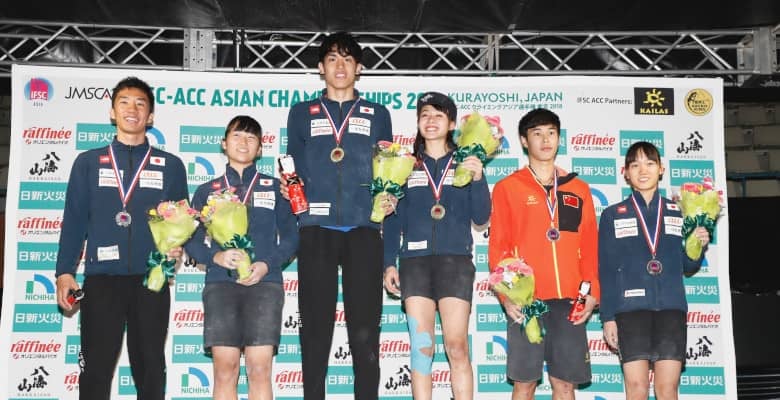 9日、鳥取県で開催中のアジア選手権倉吉2018ではボルダリングの男女決勝が行われ、男子は楢崎明智が、女子は伊藤ふたばがそれぞれシニアの主要国際大会初となる優勝を果たした。女子は2位に倉菜々子、3位に菊地咲希が入り、10代の日本人選手が表彰台を独占。男子は2位に渡部桂太が入った。