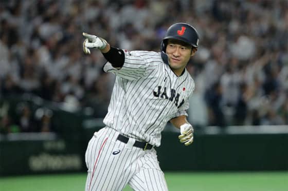 侍ジャパンは2点を追う9回、1死から代打・上林誠知(ソフトバンク)がヒットで出塁すると、秋山翔吾(西武)は三振に倒れたものの、二盗に成功。2死二塁でイエーツから代打・會澤翼(広島)がタイムリーを放ち、1点差に迫った。ここで打席に立った柳田悠岐(ソフトバンク)がバックスクリーンへ豪快な逆転サヨナラ2ランを叩き込み、劇的な勝利を飾った。