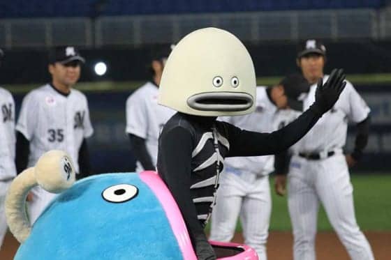 5月に行われた「YOKOSO桃猿」以来となる台湾上陸を果たしたロッテのマスコットキャラクター「謎の魚」。5月の段階では第3形態までを披露していたが、今回は第5形態まで進化してからの再上陸。成長(?)した姿を見せ、台湾の野球ファンを沸かせた。