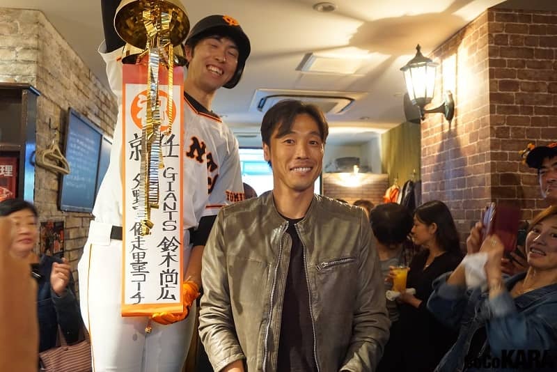 巨人の外野守備走塁コーチに就任する鈴木尚広さんのファンイベントが、同じく巨人のバッテリーコーチに就任する相川亮二さんのお店で11月11日に開催された。