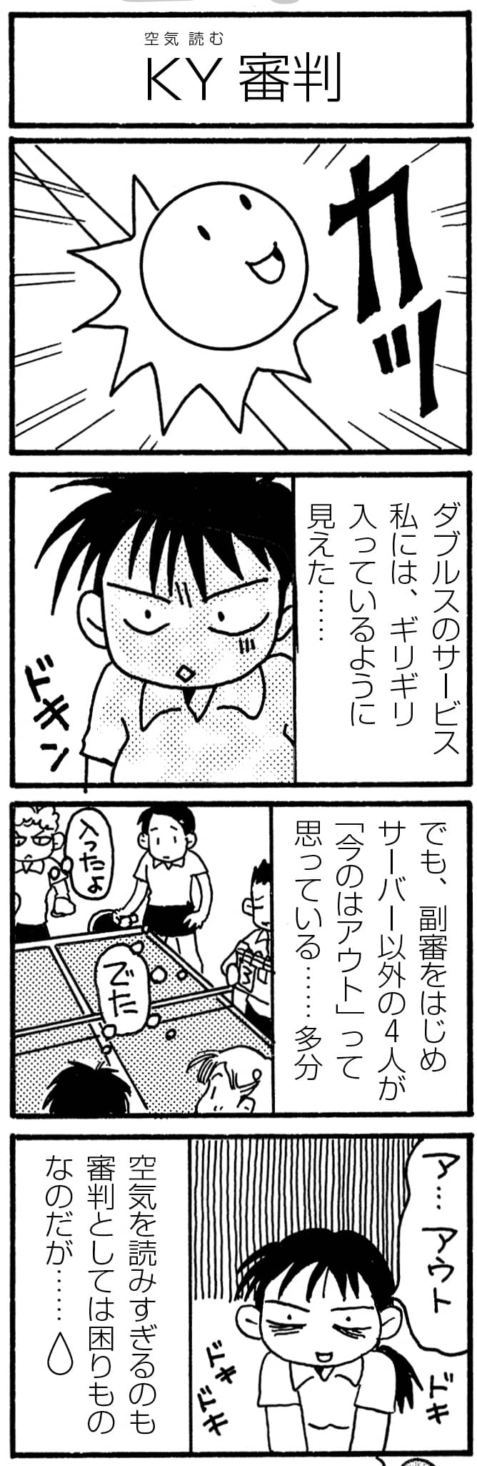 KY審判【卓球4コマ漫画・レディース卓球24時】