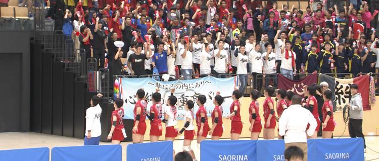 試合は序盤から接戦となりますが、粘りのバレーでラリーを制した三重が第1セットをデュースの末先取します。