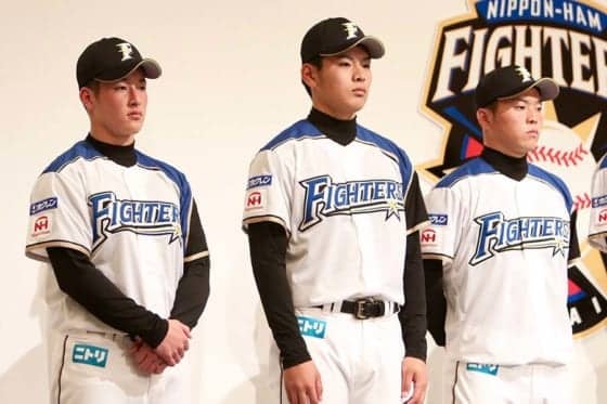 日本ハムは23日、札幌市内で新入団選手発表会を行った。ドラフト1位の吉田輝星投手、ドラフト2位の野村佑希内野手ら支配下7選手と、球団初の育成選手となる海老原一佳外野手の8選手が登壇。吉田のエースナンバー「18」のユニホーム姿がお披露目された。