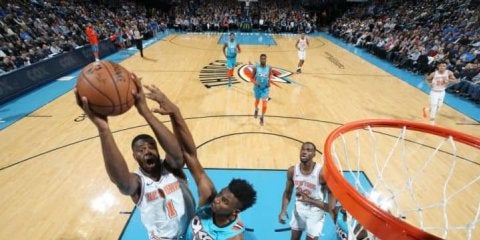 現地11月23日のペリカンズ戦では、そんな若手2人の大活躍で6勝目を手に入れました。1人は昨シーズン途中でナゲッツからトレードで獲得したエマニエル・ムディエイ。ポルジンギスと同じ2015年にドラフト7位指名を受けルーキーシーズンに活躍したものの、有望な若手の多いナゲッツでポジションを確保できずニックスにやって来ました。もう1人はアロンゾ・トリアー。ドラフト1位のデアンドレ・エイトンと同じアリゾナ大からアーリーエントリーしながらドラフトで指名されず、サマーリーグで結果を残しニックスとの2ウェイ契約を勝ち取ったルーキーです。
