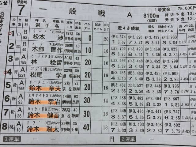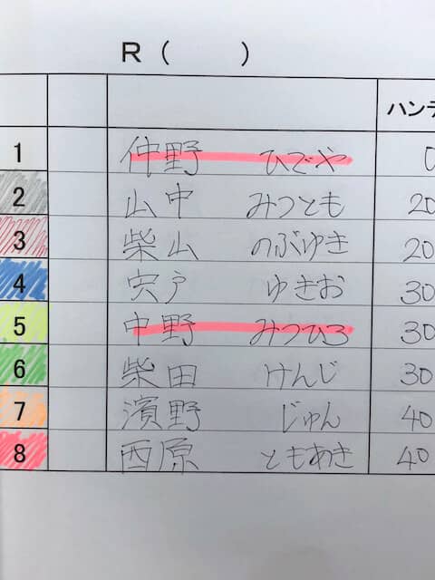 僕はトップページの写真のように自作の出走表を作成、手書きのものを使っています。