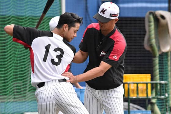 ――10月8日のソフトバンク戦の試合前練習には、福浦選手からティー打撃、フリー打撃とマンツーマンで打撃指導を受けていました。