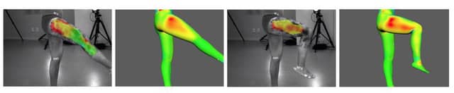 新たな設計技術は、アシックススポーツ工学研究所が持つ運動時の体表面変形挙動分析技術と、CG作品などの制作を手掛けるOLMDのCG技術を組み合わせて開発。人の動きや皮膚の変形具合などをコンピュータ上で再現し、作製したデジタル人体モデルにウエアを着せ付け、着用テストや実験なしでウエアのしわや着圧といったウエアが人に及ぼす影響を評価できる。