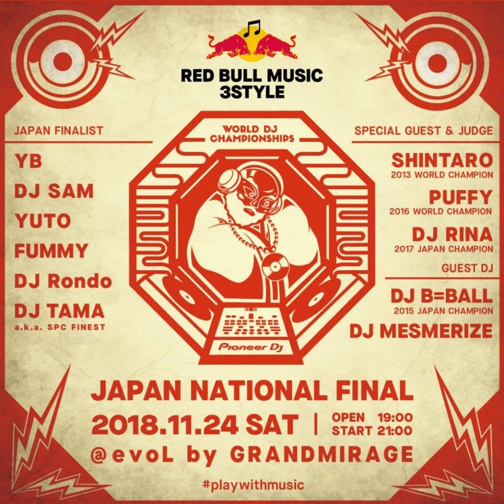 No.1の DJ を決める世界大会「Red Bull Music 3Style」の日本決勝が11月24日(土)に福岡の …