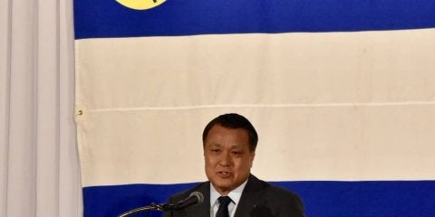 <写真・祝福の挨拶をする公益財団法人日本サッカー協会会長の田嶋幸三氏> 12月1日、大阪府ホテル阪急インタ…