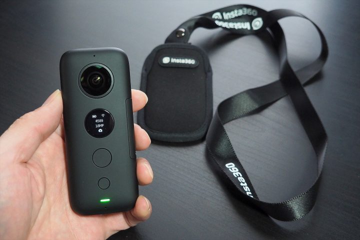Insta360 ONE Xは、5.7Kの超高画質で撮影できる全天球(360度)アクションカメラ。カメラの回りで起こったこと、すべてを映像に残しておけるのが魅力です。平べったいデバイスに半球レンズが2つ付いているユニークなデザインで、操作できるボタンは2つしかありません。だから誰でも簡単に操作できます。原稿執筆時点、公式ホームページでの販売価格は税込52,300円。