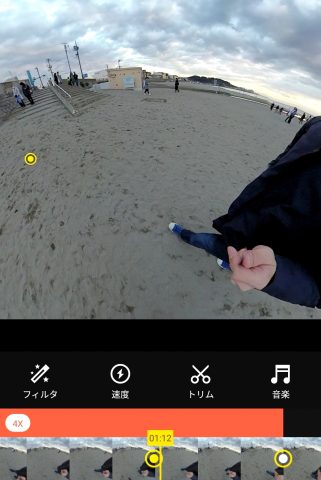 撮影テクニックも必要ありません。撮影開始のボタンを押したら、あとは放っておくだけ。アクティビティに集中できるでしょう。そのぶん、撮影後にスマホの専用アプリ「Insta360 ONE X」で編集できることがたくさんあります。映像アングルの操作、再生速度の変更、BGMの選択、フィルタ効果の付加、映像のトリミングなど、このアプリひとつで完結します。
