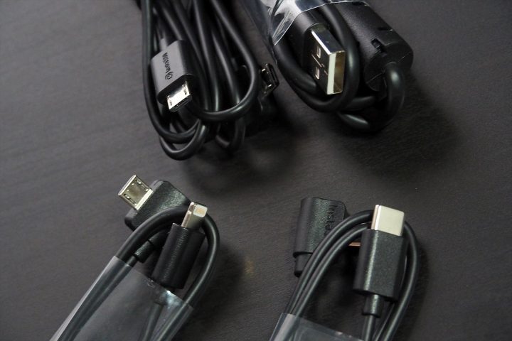 ▲Insta360 ONE Xと、iOS / Android / PCを接続するためのケーブルが同梱される