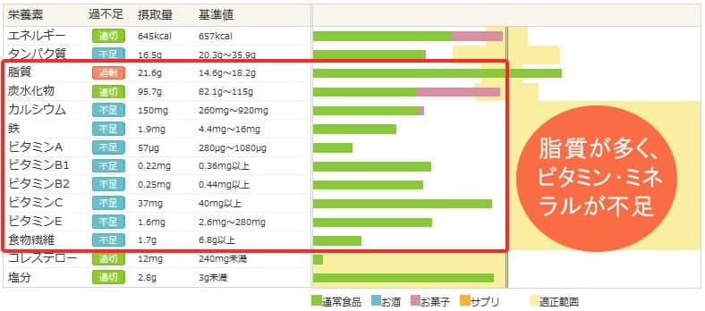 まさに「カロリーだけはとれているけれど、必要な栄養はとれていない」状況です。