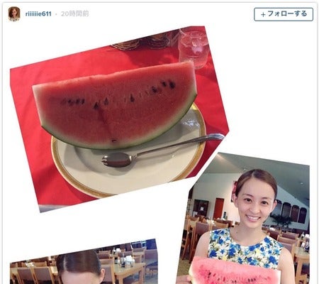 元体操選手の田中理恵さんが7月12日、大好きだというスイカを食べる姿をインスタグラムに投稿した。