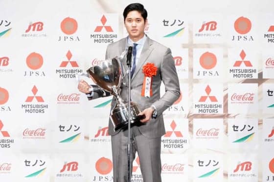 この日の受賞式に出席した大谷は、壇上で表彰を受けると「数あるプロスポーツの競技選手の中から、このような賞を受賞できたことをうれしく思います。今年1年いろいろありましたが、お世話になった球団関係者、昨年までお世話になったNPB関係者、応援してくれたファンの皆様に感謝しています。キャンプの結果の出ない時期、怪我の時期、いろいろありましたけど、皆さんの支えがあって1年間野球を楽しむことができました。数多くの選手の方の刺激を受けて野球を楽しむことができました。会場にご出席の選手の皆様の活躍が刺激になりました。2016年もこの賞をいただきましたが、来年、再来年と何度でも受賞できるように頑張っていきたいと思います」と喜びを語った。(篠崎有理枝 / Yurie Shinozaki)
