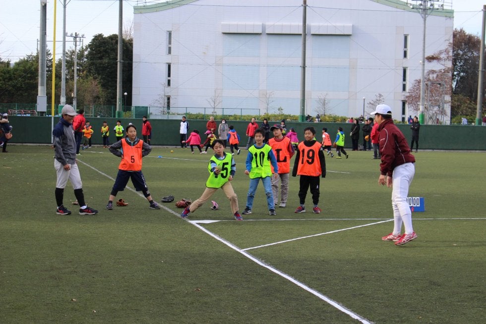 その後は、安部球場に加えて軟式野球場も使用し、野球経験の度合いや年齢などによって振り分けられたチームが各所に分かれて即席のミニゲームを開催した。早大野球部員や現役のプロ・社会人選手らもプレーや助言を通して子供たちと交流。自然と子供たちの大きな声や笑顔が弾けるまでに時間はかからず、元気いっぱいにグラウンドを駆け回る姿があちこちで見受けられた。