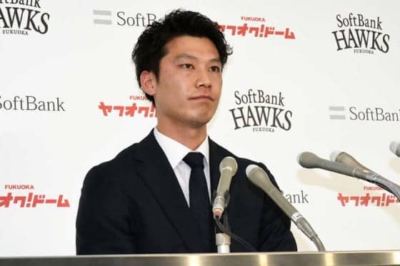 右肘の故障で離脱し2度の手術を受ける ソフトバンクの岩嵜翔投手が21日、ヤフオクドーム内の球団事務所で契約更改交渉を行い…
