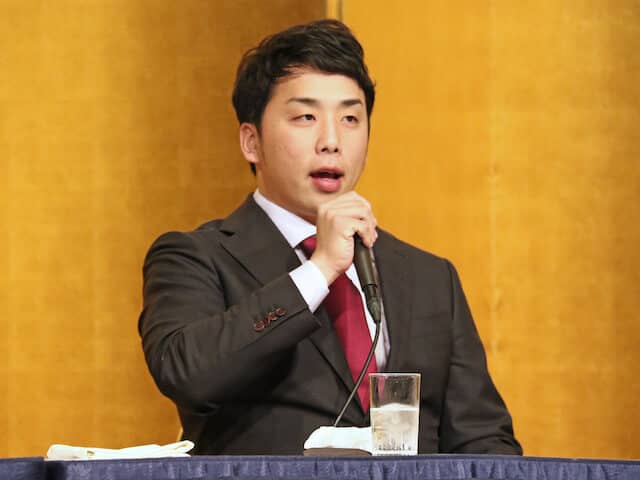 共同記者会見では、1人ずつ意気込みを語った後に注目の並びの話しへ。まずは1番車・三谷選手が指名され、マイクを取りました。