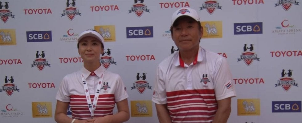 日本選抜とタイ選抜の対抗戦 アマタフレンドシップカップが現地時間22日、タイのアマタスプリングスを舞台に第2ラウンドが終了。日本は6ポイントで(勝利:1ポイント、引き分け:0.5ポイント)タイに4ポイントリードを許し、最終日を迎える。チームキャプテンを務める尾崎直道&古閑美保が2日目までの日本チームの印象や明日のシングルス戦についてインタビューに答えた。