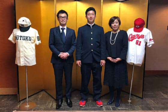 広島のドラフト1位ルーキー小園海斗内野手の激励会が23日、神戸市内で行われ、報徳学園OBや関係者約130人が集まり、ゴールデンルーキーの門出を祝った。
