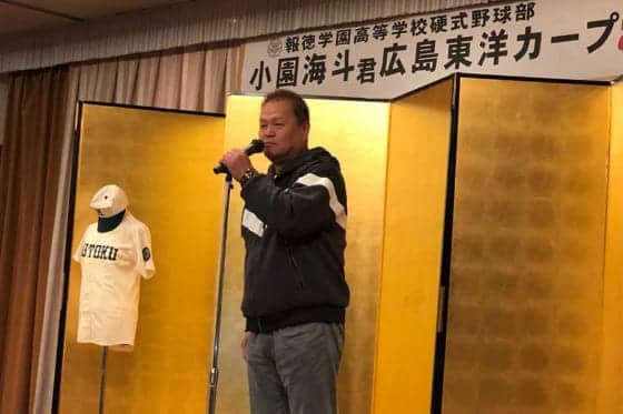 広島のドラフト1位ルーキー小園海斗内野手の激励会が23日、神戸市内で行われ、報徳学園OBの金村義明氏がサプライズゲストとして最後に登場する一幕があった。