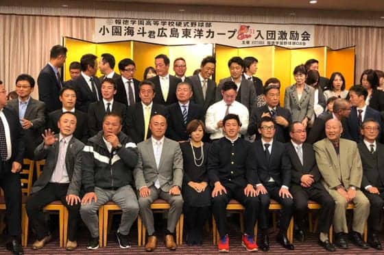 広島から今年ドラフト1位指名を受けた小園海斗内野手(報徳学園)のOB会主催の激励会が23日、兵庫県神戸市で開かれ、多くの関係者が励ましの言葉を掛けた。その中で部長時代から小園を見守ってきた大角健二監督も熱いメッセージを寄せた。