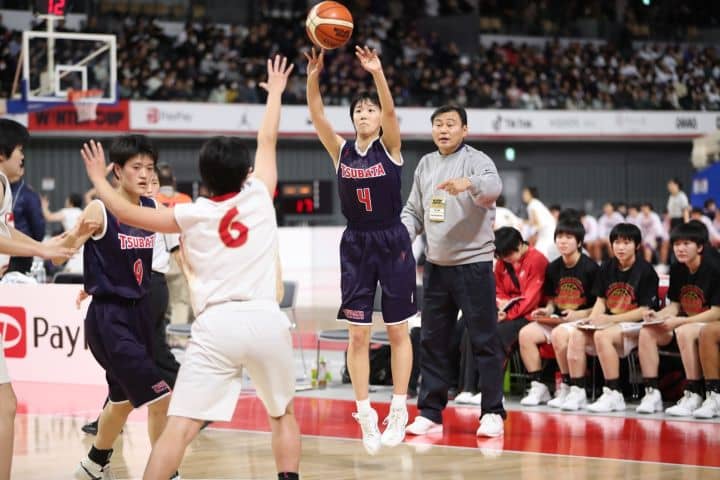 サイズでは安城学園が上、しかも相手は野口さくらという大会屈指のスコアラーを擁している。それでも津幡はフットワークの良いディフェンスでイージーシュートを許さず、トランジションで違いを生み出した。序盤はディフェンスばかりが目立つ重い展開となったが、走る展開に持ち込むことで津幡は安城学園に食らい付き、後半になってトランジションからオープンで放つ3ポイントシュートが決まり始めたことで2桁のリードを作り出す。