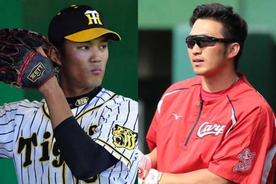 阪神・藤浪晋太郎(左)、広島・鈴木誠也【写真:荒川祐史】