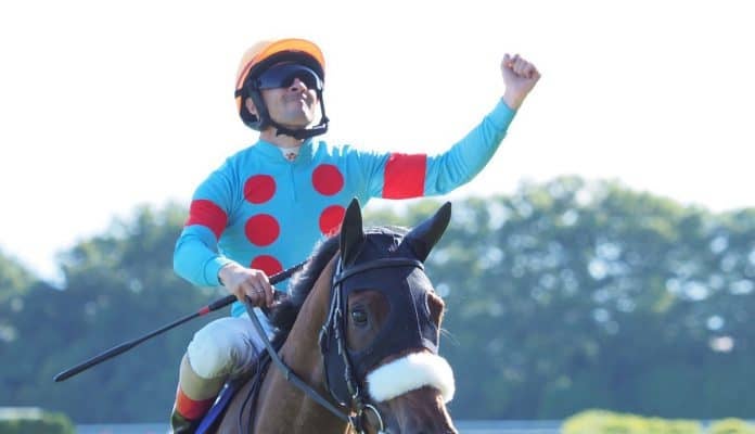 28日、中山競馬場で行われた第6レース・2歳新馬戦で、マイヨブランに騎乗したC.ルメール騎手が1着となり、2005年に武…