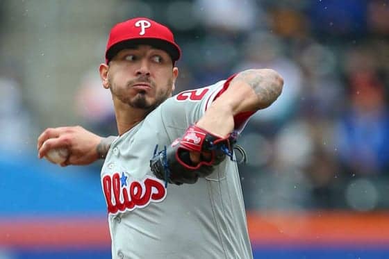 続いては、フィリーズのビンス・ベラスケス。痛烈なライナーでのピッチャー返しが、ボールを投げた直後の右腕に直撃し、三塁方向へと転がる。すると、打球をダッシュで追いかけ、グラブを外して左手で拾い上げた。そして、左手でそのまま一塁へ送球。右ピッチャーとは思えない“球速“で一塁手のグラブに収まり、アウトとなった。