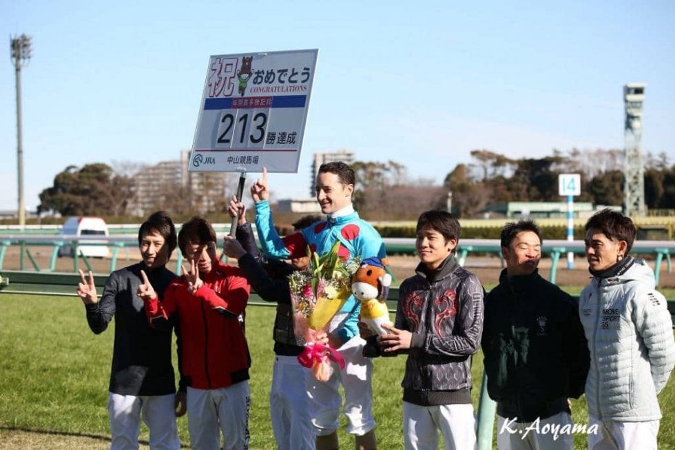 28日、中山競馬場で行われた第6レース・2歳新馬戦で、マイヨブランに騎乗したC.ルメール騎手が1着となり、2005年の武豊騎手がマークした212勝を更新し、JRA年間213勝を達成した。