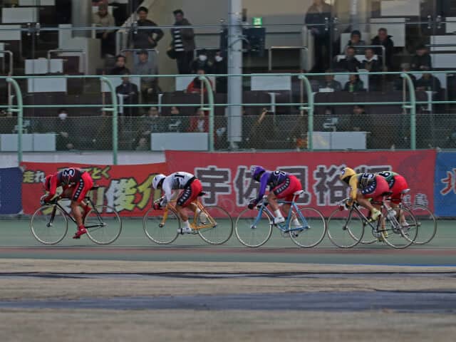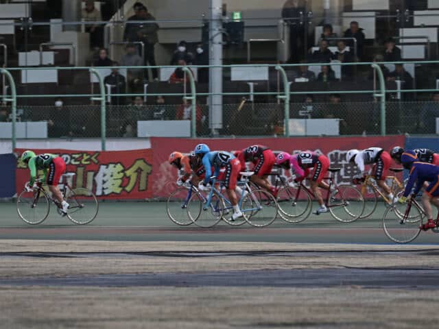 残り7車となり、第4コーナーを回って、依然として脇本が先頭で風を切る。