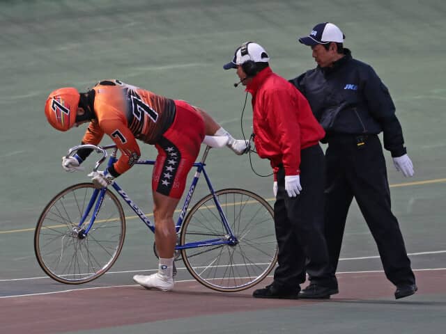 第2センター、中団で村上義の後輪と平原の前輪が接触して、落車のアクシデント。