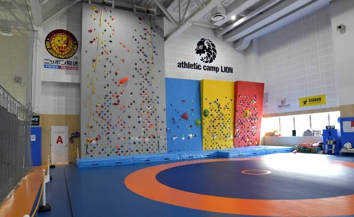 「athletic camp LION」はセガサミースポーツアリーナ(東京都・江東区)の一画にあるスポーツクラブで、新日本プロレスとニッポン放送がタッグを組んで今年7月に誕生した。ボルダリングのほかにもレスリング、スラックライン、ストループスの計4つのスクールを開校しており、各種目には日本を代表するコーチ陣が揃っている。ボルダリングでは元日本代表の伊東秀和や、W杯出場経験のある廣重幸紀、戸田萌希らが講師を務める。