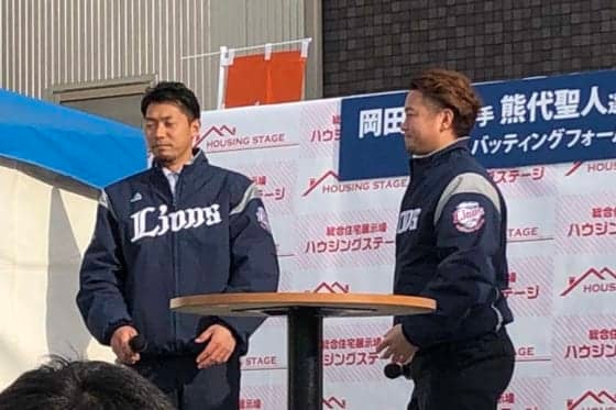 西武の岡田雅利捕手が6日、埼玉・所沢市で行われたトークショーに、熊代聖人外野手とともに登場し、軽妙なやりとりでファンに笑いを提供しながらも、今季への思いを語った。