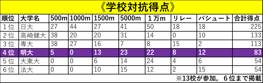 ▼部門総合 明大――4位