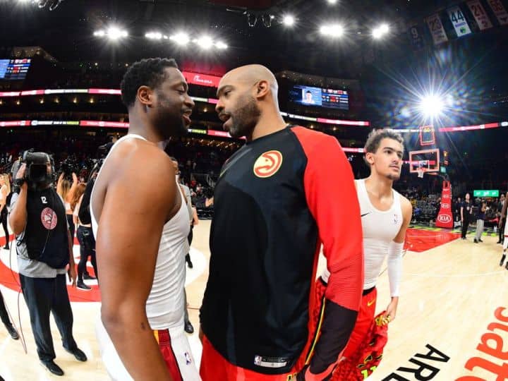 ホークスは、第1クォーターのタイムアウト時、会場となったステイトファーム・アリーナの大型ビジョンにウェイドのキャリアを称える特別映像を流した。そこには、ホークスでプレーする大先輩ビンス・カーターの姿が。そこでカーターはウェイドに向けてメッセージを寄せた。