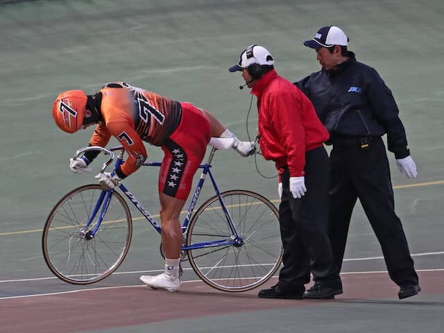 三谷が歓喜のゴールをしていた頃、まだゴールに到達していなかったのが平原だ。落車した村上義は棄権したが、平原はひしゃげた自転車にまたがりゴールを目指した。ゴール線30m前までくれば、担いでも、引きずってでもゴール可能。しかし、それ以前は自転車に乗らなければならないルールになっている。自然と場内は一部の「頑張れ!平原」から「ひーらはらっ!」コールの大合唱に変わった。どんな形でもゴールしたい、それがプロとしての責任でもあり、応援してくれたファンのためでもある。痛々しい姿も、必死にゴールを目指す平原の姿には感動を覚えた。これが他の競技だったら、こんなことはあるのだろうか!?これこそ競輪の魅力の一つではなかろうか。ファンに一礼してから引き揚げた平原の姿は大袈裟ではなく。神々しく映った。やっぱり、競輪はいいと、思った瞬間でもあった。