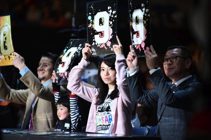 オールスターのアンバサダーを務めた女優の森矢カンナさん。大河正明チェアマンとともにダンクコンテストの審査員を務めた。