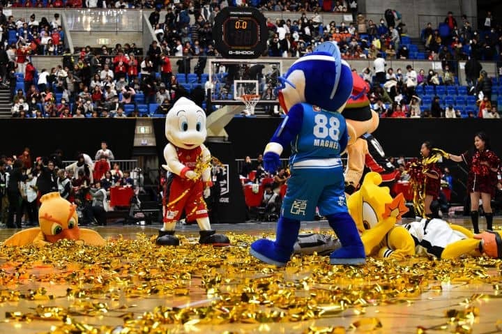 今回のオールスターではB1全チームのマスコットが集結。開場時には全国から集まったお客様を出迎えた。