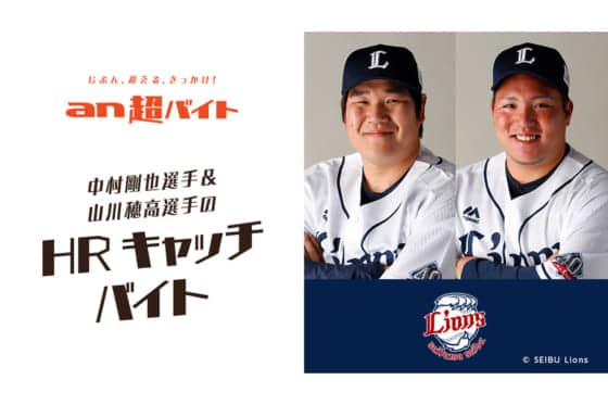 パ・リーグオフィシャルスポンサーのパーソルグループのパーソルキャリア株式会社が運営するアルバイト求人情報サービス「an」は1月24日、思わず挑戦してみたくなるような「an超バイト」の新企画として「中村&山川ホームランキャッチバイト」を実施すると発表した。応募方法、詳細は、特設サイトにて公開されている。