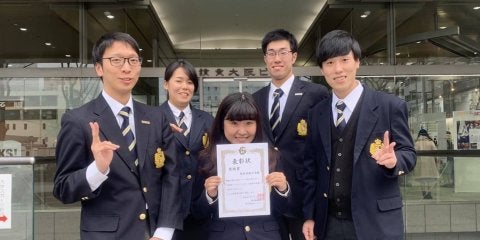 <写真・表彰式後、表彰状を掲げる編集部員> 1月12日、読売新聞大阪本社にて第12回ナジック杯大学スポーツ新聞コンテ…