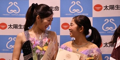 <写真・笑顔で表彰される本橋(右)と神野> 1月5日、栃木県立日光霧降アイスアリーナにて第91回日本学生氷上競技選手権大…