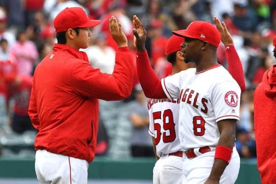 エンゼルス・大谷翔平(左)とジャスティン・アップトン【写真:Getty Images】