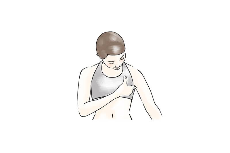 また、脇のリンパ節をぎゅっと握って、リンパの流れをスムーズにして、老廃物を流すのも効果的。リンパと血流が良くなって、冷えていた胸もぽかぽかと温かくなっていきます。