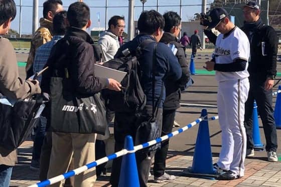 ファンのサインに応じるオリックスのキャンプに参加中の成瀬善久【写真:沢井史】